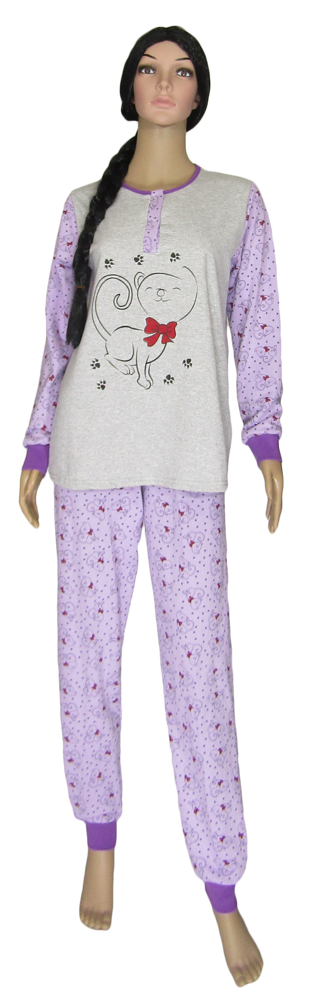 Пижама женская теплая трикотажная 18043 Gentle Cat Grey&Violette на байке, р.р.40-58. Украина.