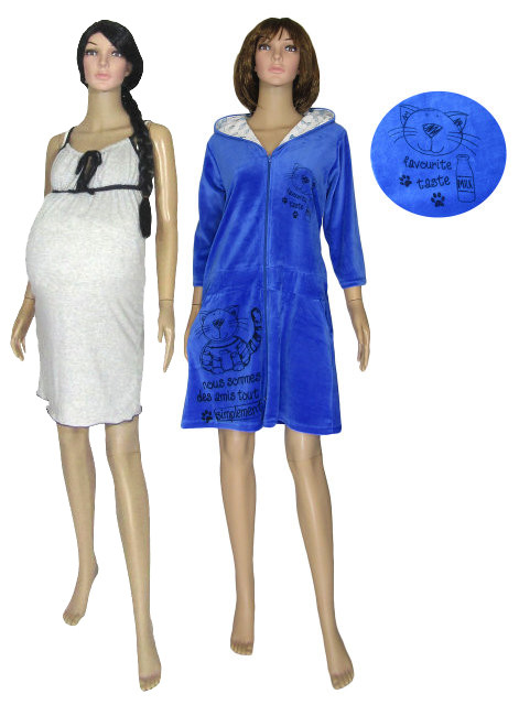 Ви - молода матуся? Тоді Ви будете зачаровані стильною серією комплектів з велюровими халатами. В комплект входить трикотажна нічна сорочка з 100 % бавовни (забарвлення - на Ваш вибір з представлених на фото) і стильний халат з велюру.