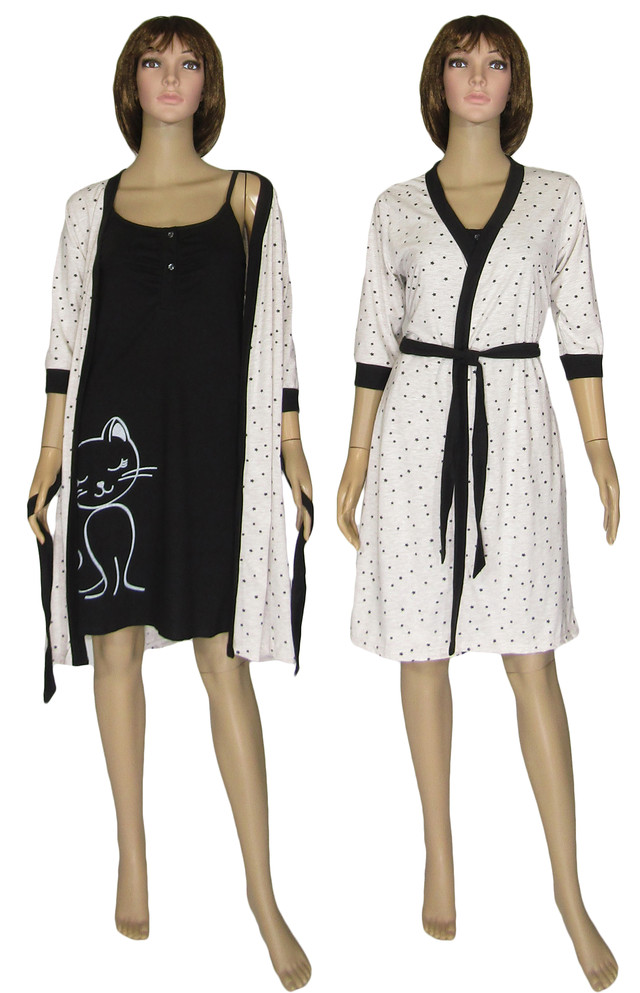 Комплект пеньюар трикотажный 18056 Fanny Cat Contrast коттон пенье, ночная рубашка и халат, р.р.44-54. Украина