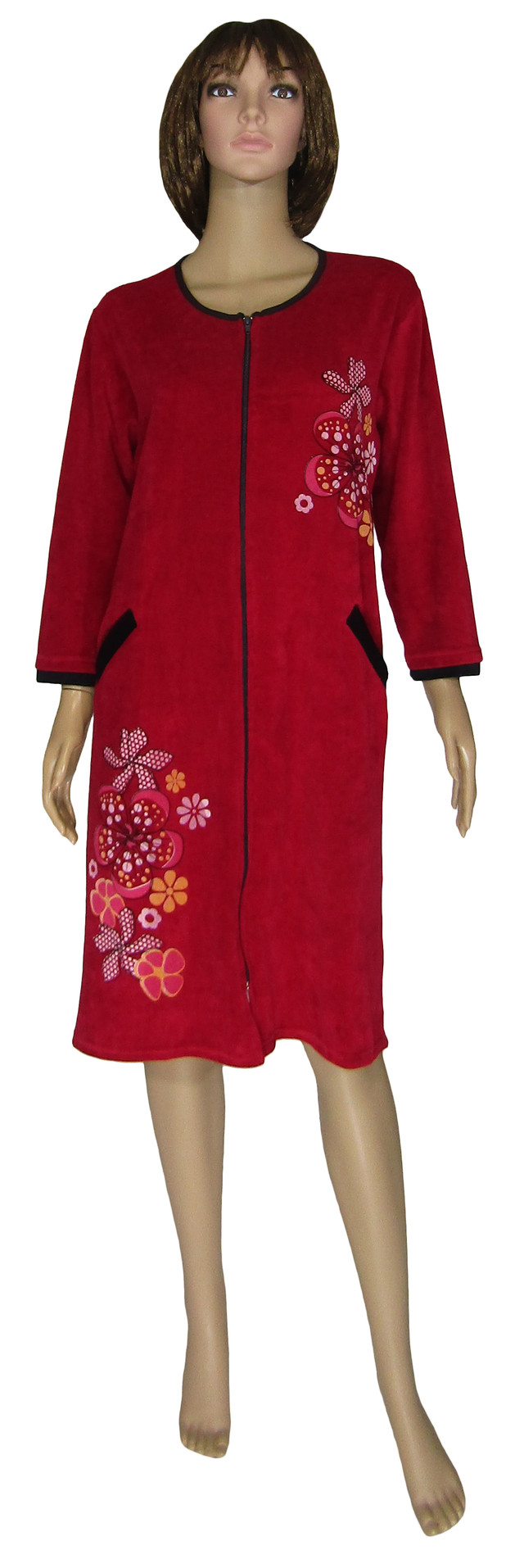 Халат жіночий велюровий домашній на блискавці 18052 Flowers Dream Vishnya, р. р. 48-62. Україна.