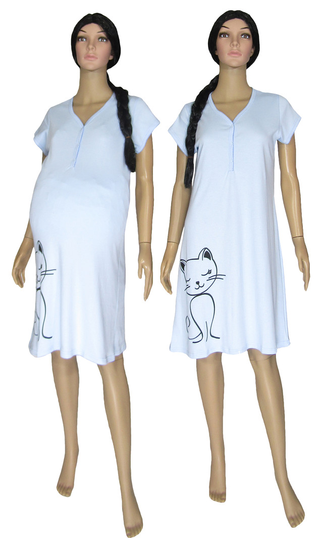 Нічна сорочка для вагітних і годуючих 18303 Fanny Blue Cat інтерлок, р. р. 44-58. Україна
