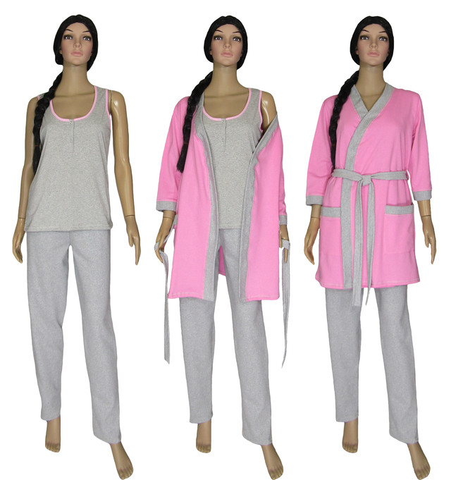 Комплект 18306 Mindal Soft Grey&Pink, піжама c брюками і теплий халат, р. р. 42-56, Україна.
