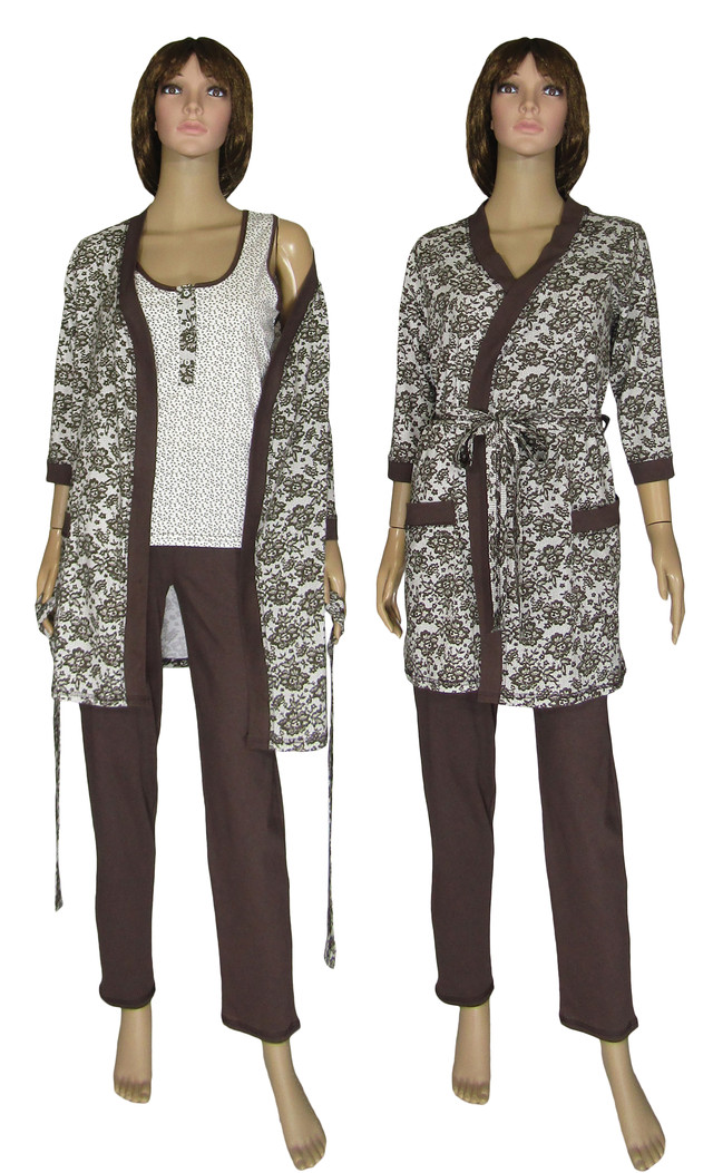 Пеньюар домашній 19016 Mindal Agure Brown, піжама c брюками і халат, р. р. 42-56, Україна.