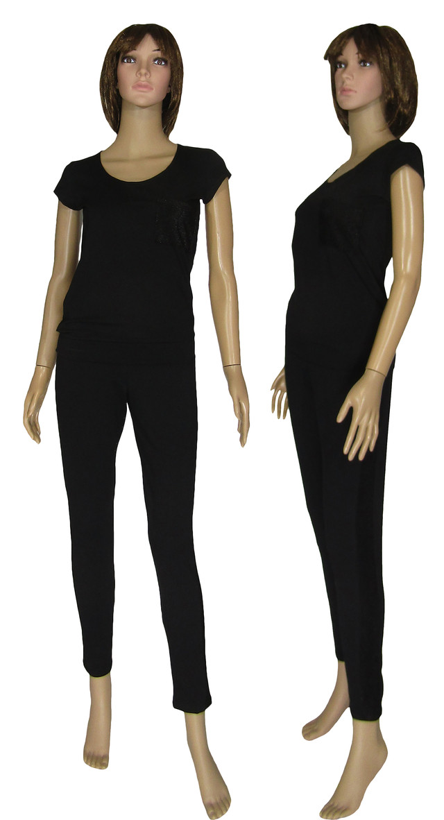 Костюм жіночий спортивний 19021 Lora Lux Lampas Black з люрексом, футболка і штани, р. р. 42-56. Україна.