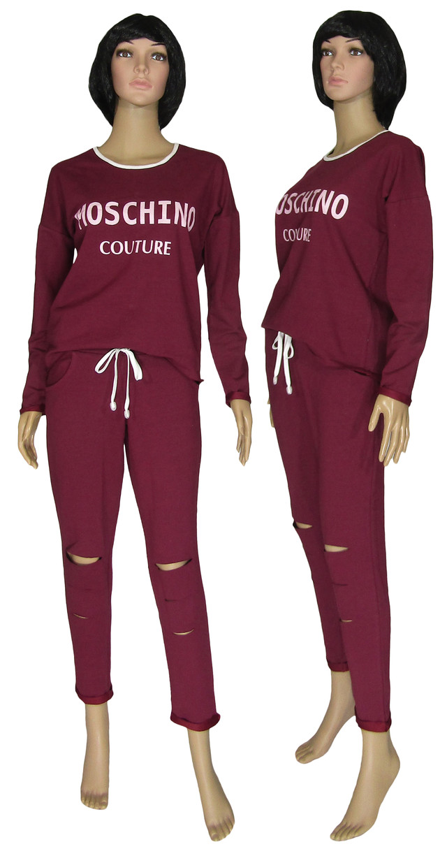 Костюм жіночий 18095 Moschino Осінь Bordo, кофта та штани, двухнитка, р. р. 42-52. Україна.