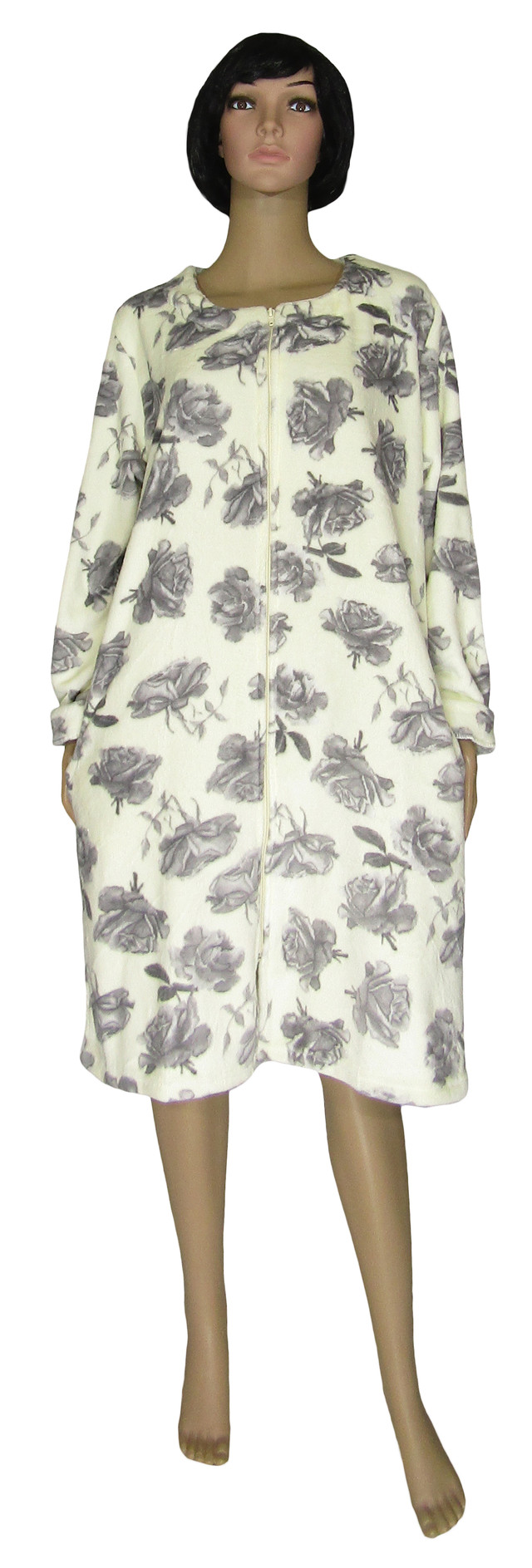 Практичні і дуже красиві зимові жіночі домашні халати. Виготовлені з мікрофібри (вельсофта з високим двостороннім ворсом. Халати мають середню довжину (зріст моделі на фото - 170 см), внутрішні бічні кишені застібаються попереду за допомогою блискавки.