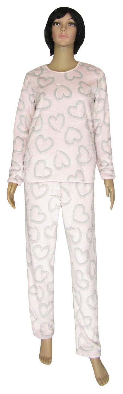 Піжама жіноча махрова 19072 Soft Сердечка / ніжно-рожева вельсофт, р. р. 40-54. Україна.