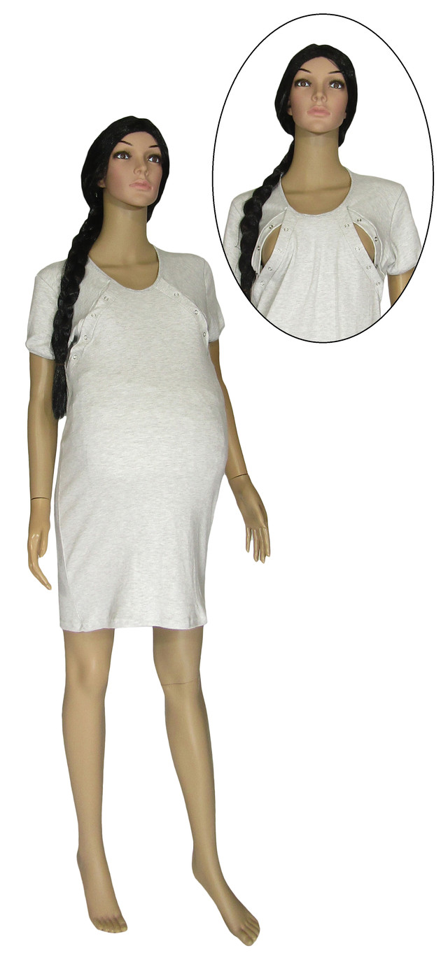 Нічна сорочка для вагітних і годування 20005 Mishel інтерлок сірий меланж, р. р. 42-56. Україна