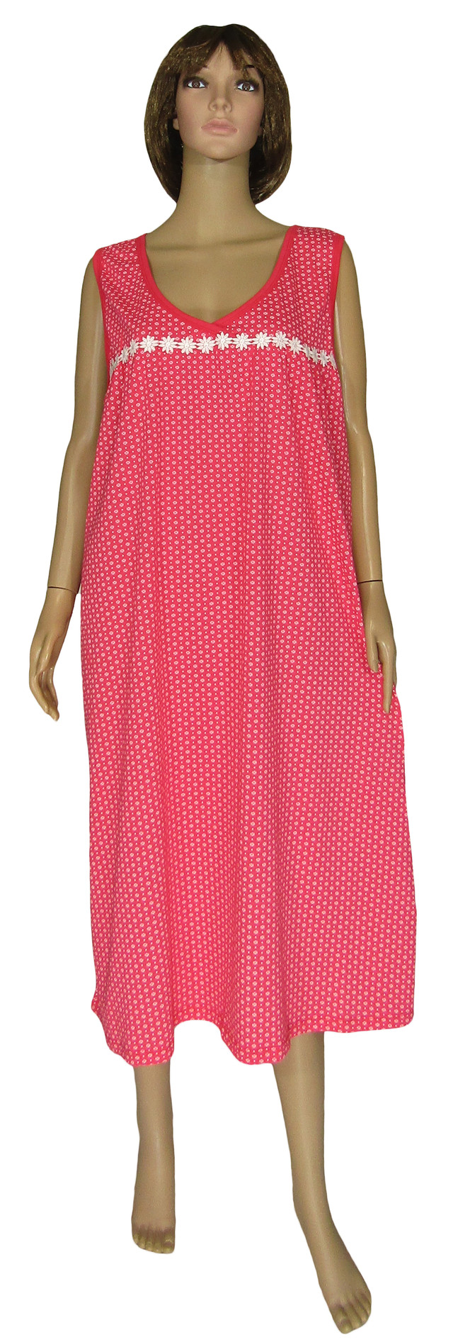 Женская длинная ночная рубашка 03260 Ромашка Супер Батал коттон Красная 66-68, Украина